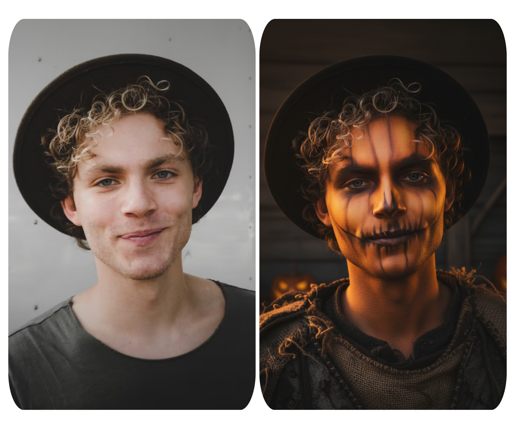 If you want to make these styles for yourself, simply upload your photo to our Halloween photo generator and type: