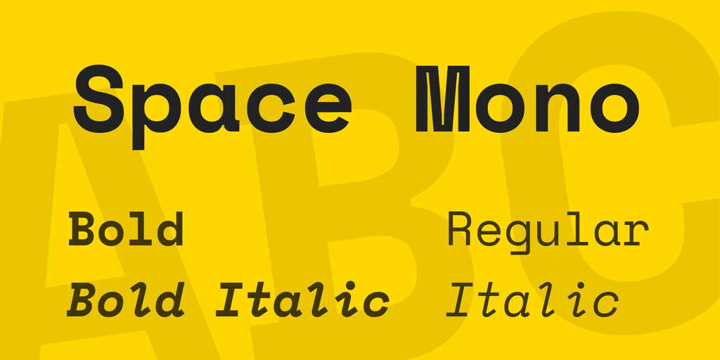 Space Mono can be a very unique choice when it comes to branding. Combining traditional typewriter letterforms with a modern, geometric twist, it deliver a retro but futuristic vibe to the appeal.