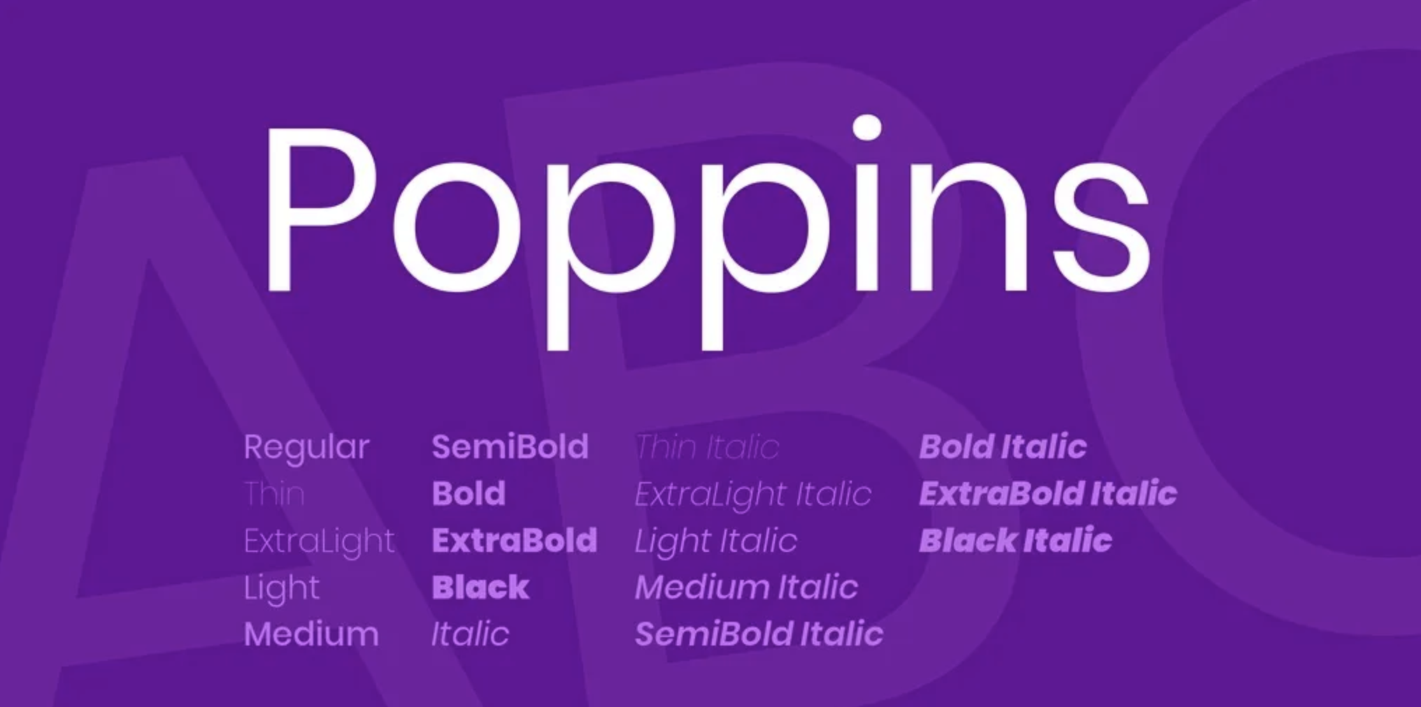 Poppins is a sans-serif font with many different kinds of fonts weight to choose from. With the clean lines and minimal forms, Poppins is a great choice if you want to create modern logo design remain versatility and readability.