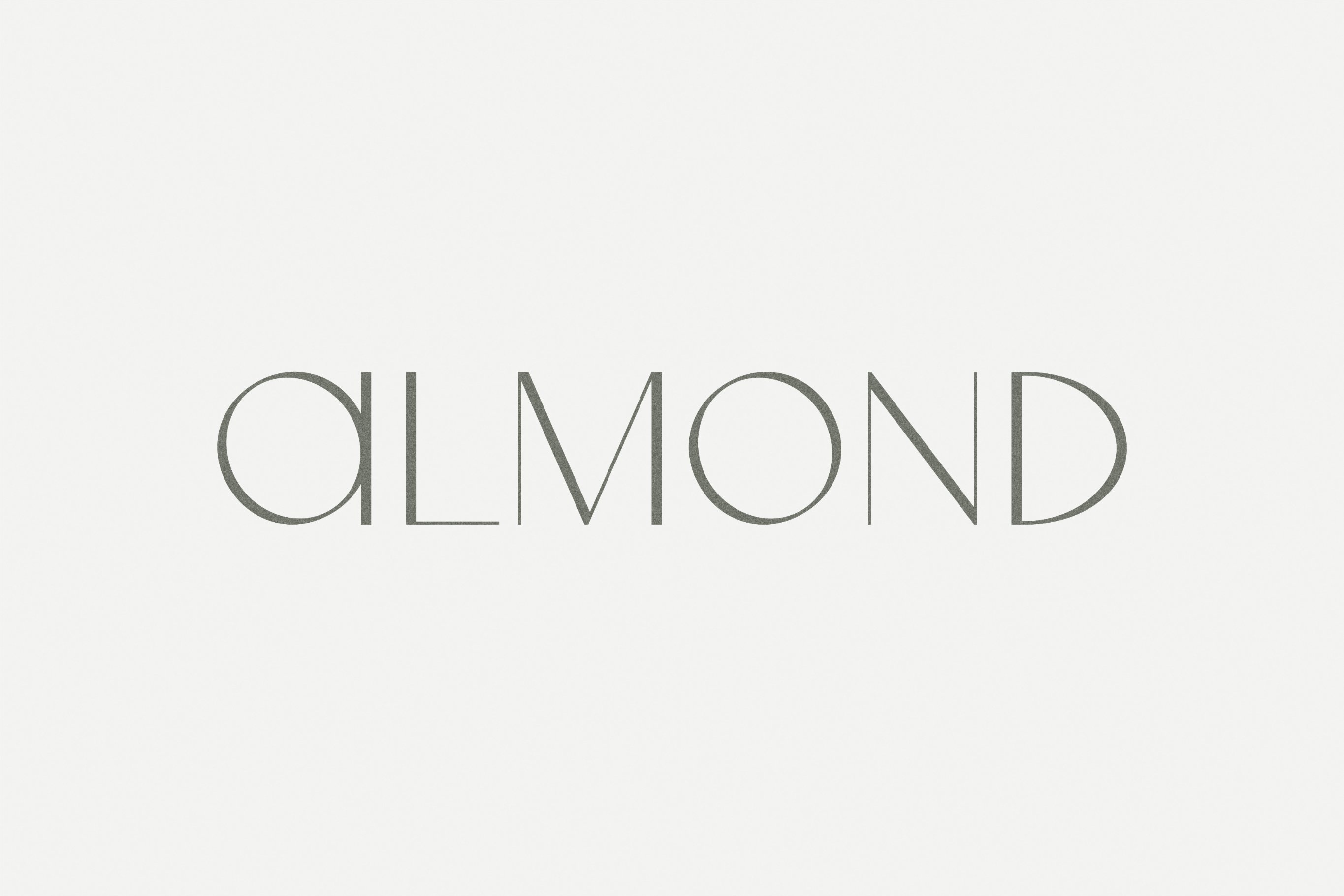 The Almond font is a blend of modern elegance, characterized by straight lines of varying widths that add a dynamic touch. Its classic foundation is enhanced by an infusion of elegance and a sense of dynamism, creating a unique typographic style.