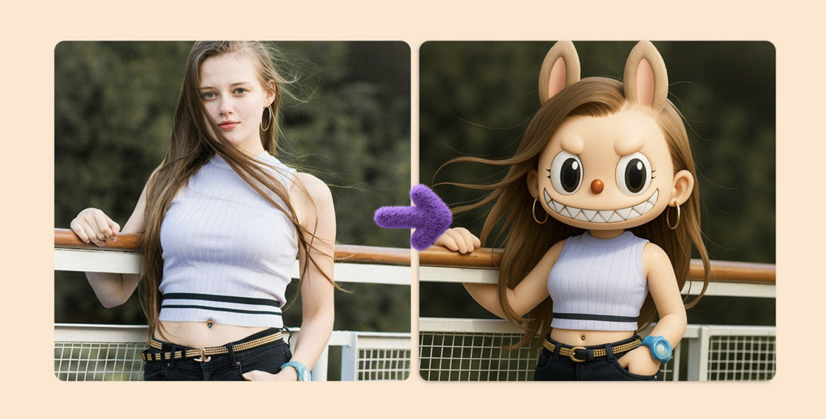 Labubu is a big-eared, mischievous creature and one of the best-selling blind box collectibles from POP MART. POP MART brings designer toys and collectibles and Labubu is part of POP MART's The Monsters series. With a strange appeal and fun personality, fans fell in love with Labubu like its companions (e.g., Molly and Dimoo). Labubu is one of the notable success stories at POP MART, and still a huge trend with toy collectors and Gen Z lovers globally. With our AI Labubu Maker, you can upload a photo to turn yourself into a cute Labubu Blind Box figure in seconds!
