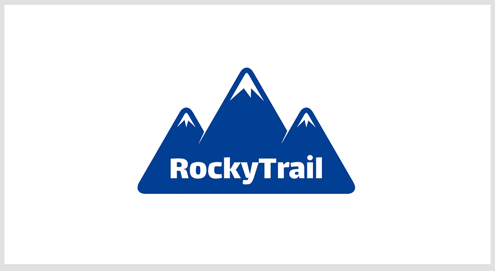 The outdoor logo displays a stunning blue vector mountain icon along with the brand name “RockyTrail” embedded into the mountain shape. This integrated placement generates a unique visual identity which reflects the brand’s relationship to nature and adventure. This design decision contributes greatly to the uniqueness of the logo, which is perfect for an e-commerce company that specializes in outdoor equipment and trail necessities.