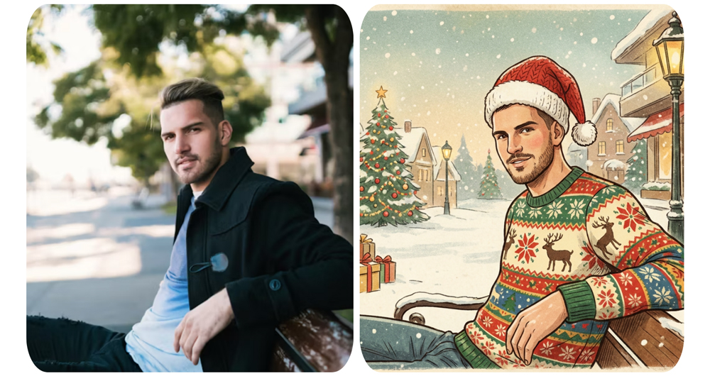Instantly add a festive Christmas sweater to any photo with AI, keeping your face natural. Fun, stylish, and completely free.