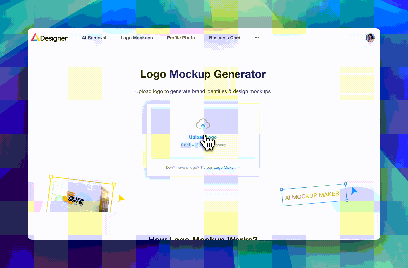 Coming up with logo design mockups is a significant way of giving life to your brand. It's about how your logo will look on different surfaces and products. Whether you're a small business owner, a startup founder, or a designer seeking inspiration, LogoAI allow you to generate logo mockups that will bring their vision to life without needing any effort.