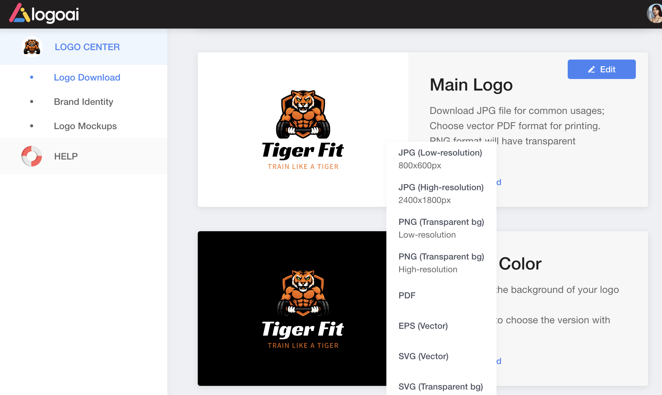 Try out different logo designs until you find the one that feels just right for your brand. Once you've purchased your logo, visit our Logo Download Center to get all of your logo assets (including inverted, white and black versions) in various formats (PNG, JPG, PDF, SVG, etc) for whatever use you need. With LogoAI, your logo is not just a design, but the beginning of a complete and unforgettable brand experience!