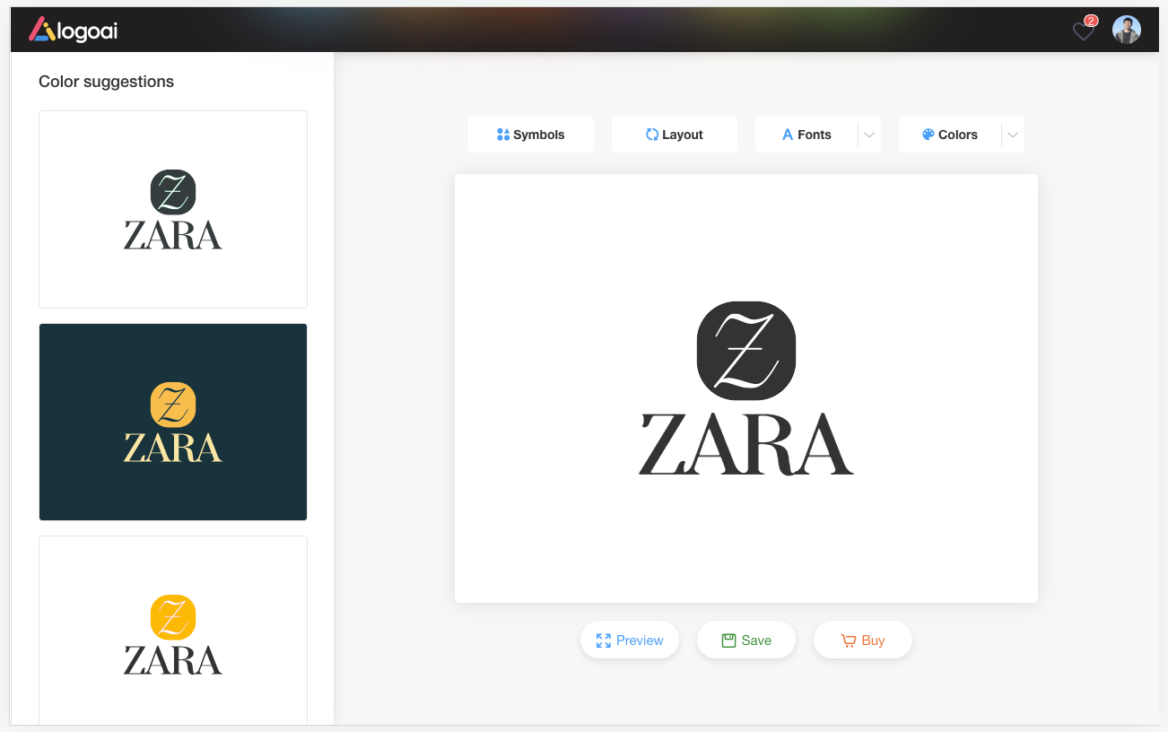 If you like a particular design, feel free to click on the edit button to customize and create your own. You can easily change the letter, name, and color of the design, and LogoAI will even suggest different variations for your to choose from.