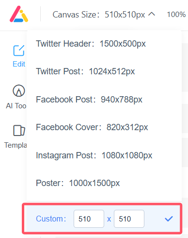 Alternatively, use the custom canvas size tool available on the edit page to precisely define the required size of the image.