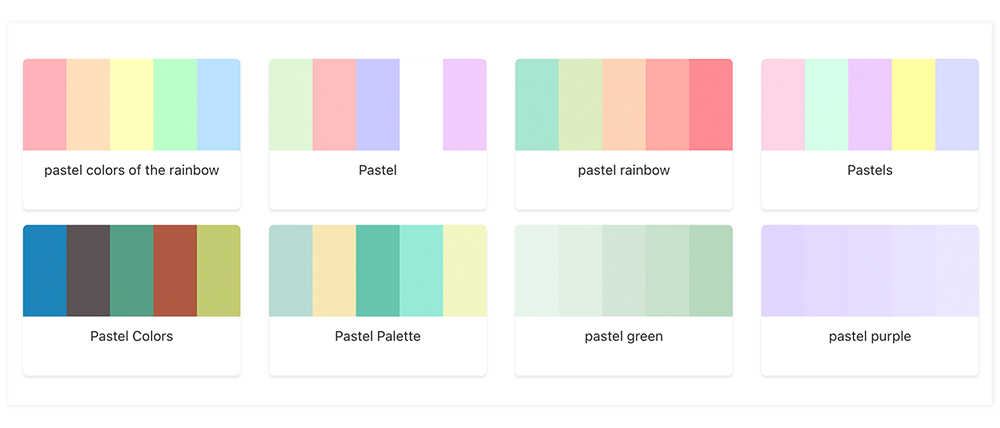 Pastel colors, also known as “tints,” are a group of colors that are soft, light, and muted. Pastel colors are the result of mixing one pure color with white, hence it is a desaturated version of pure colors and hues. These pastels, which can also be lighter versions of primary and secondary hues, are mostly described in low hue and bright lightness which creates a sense of calm.