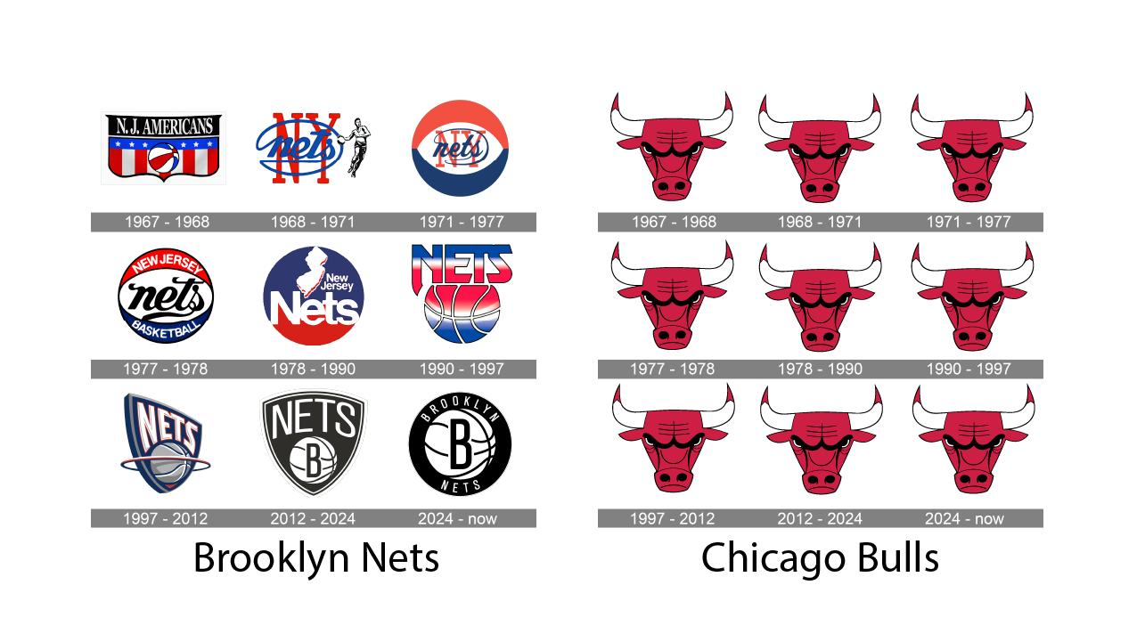 Take a look at the nine different logos that the Brooklyn nets have gone through from 1967 to the present day. You can tell that there is a trend towards minimalism and sleeker lines, compared to the detailed and colorful original logo. As the times progress, the Brooklyn logo progresses with it to stay on top of the trend, culminating in the currently modern and minimalistic logo. The fans are also a part of this change; they witness these design changes, with each logo representing a different but important era. These changes not only keep the brand fresh but also allow fans to feel a sense of progression and growth alongside the team.