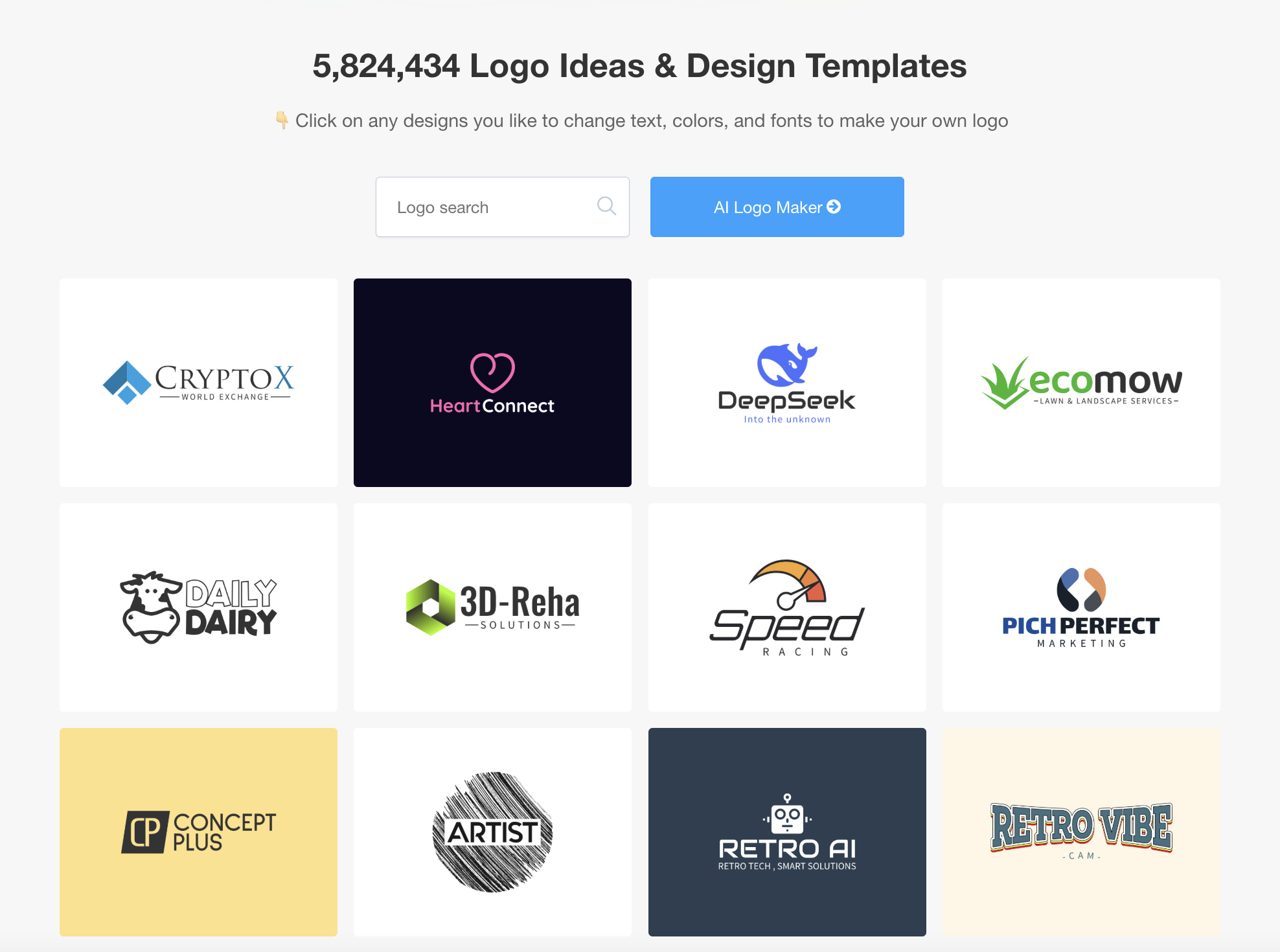 With more than 5 million templates and logo ideas at your disposal, you’ll find endless inspiration for your logo design. From modern to colorful, there is every type of style available for every new business or logo update. 👇 Select a design that resonates with you and change the text, colors, and fonts to make your own logo!