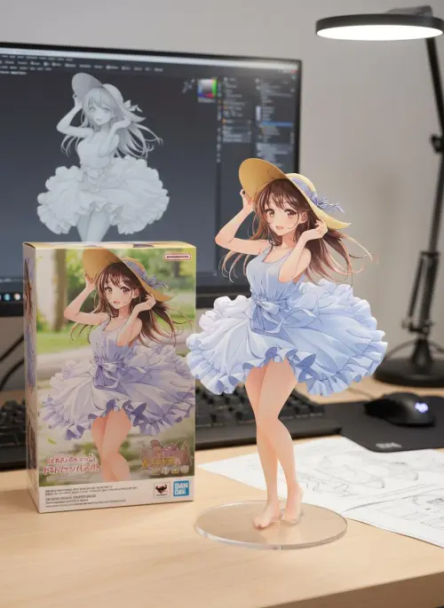 Display your 1/7 scale figure on a desk with ZBrush modeling and BANDAI-style packaging.