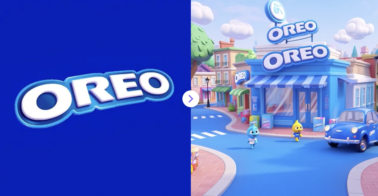 Upload your logo and generate a fun Pixar-style 3D brand world with animated scenes, characters, and immersive brand storytelling.