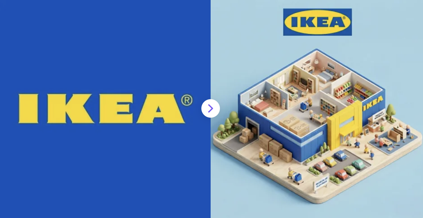 Turn your logo into a playful 3D concept store with brand colors and iconic elements—instantly and for free.