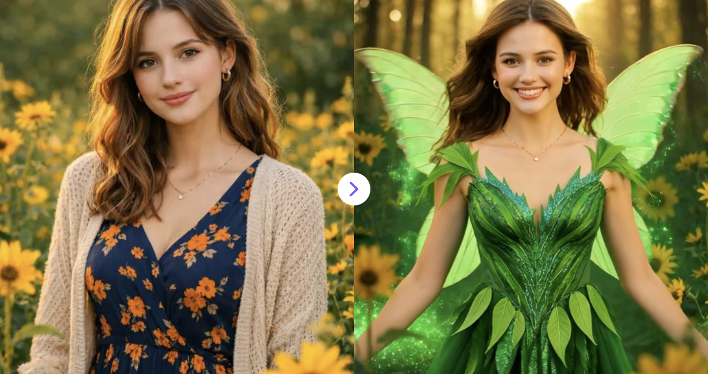Turn your photo into a magical fairy video with sparkling wings, glowing particles, and enchanted scenery in seconds. β¨π§βοΈπ¬