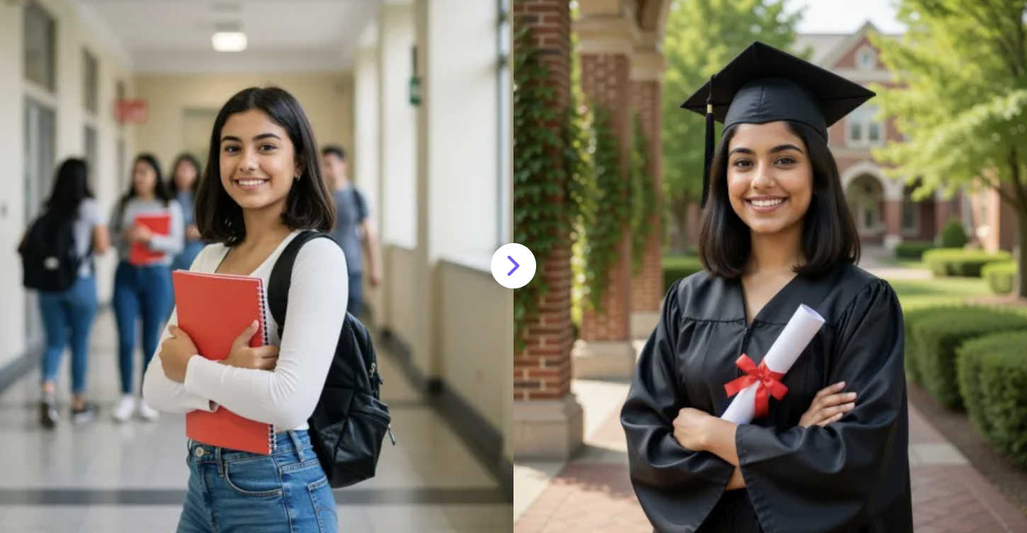 Upload your photo and instantly create a professional graduation portrait with cap, gown, and classic graduation style