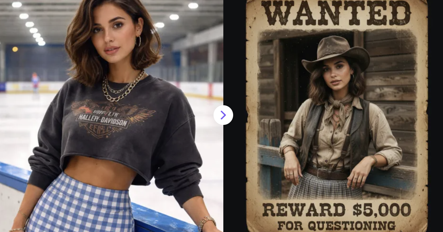 Upload your photo and instantly turn it into a classic “Wanted” poster with authentic text, vintage style, and dramatic western flair. 🤠