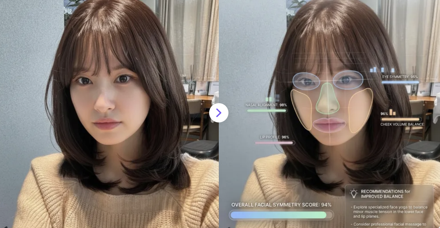Analyze facial symmetry with AI-powered precision in seconds. Ideal for beauty insights and aesthetic evaluation.