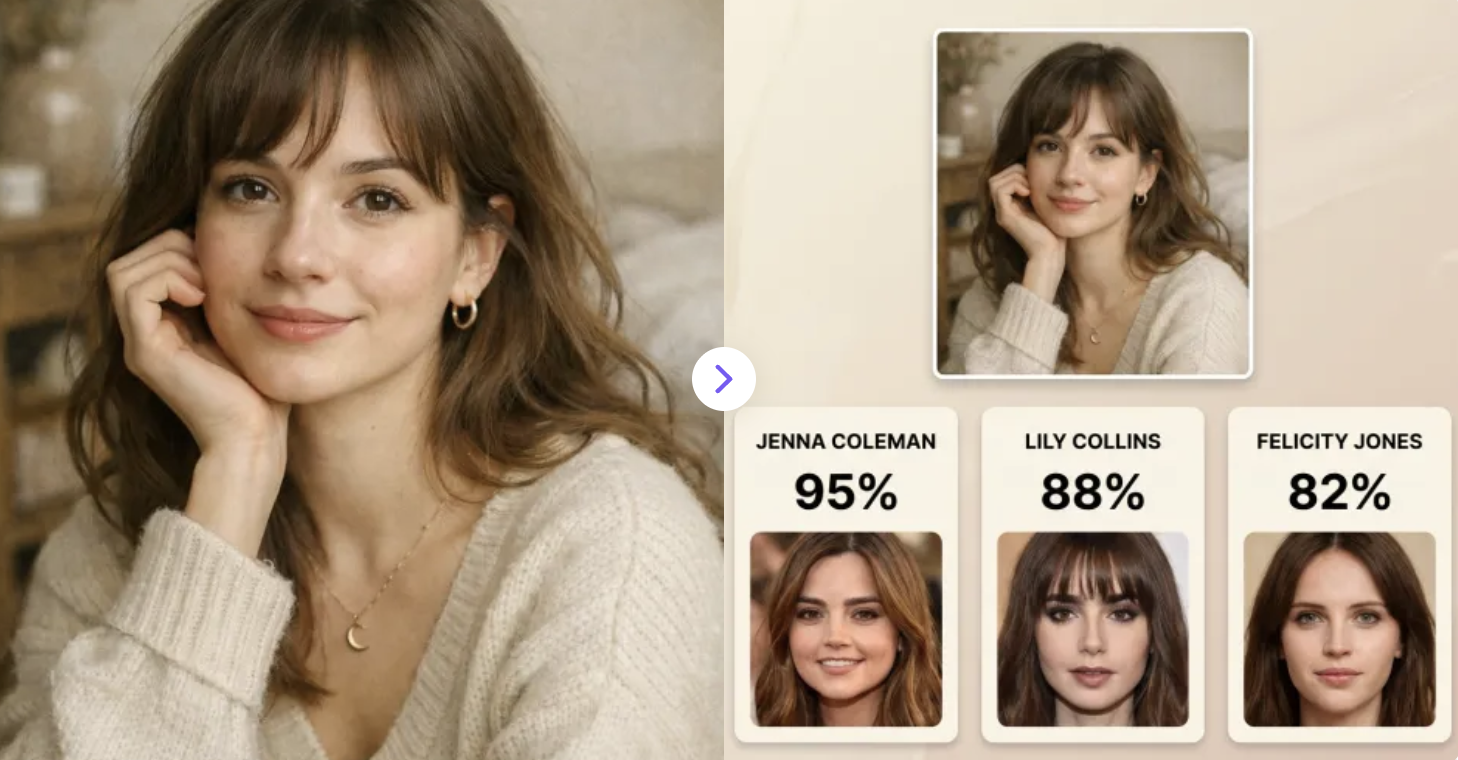 Upload your photo and instantly see your top 3 celebrity look-alikes with realistic similarity scores—free and online!