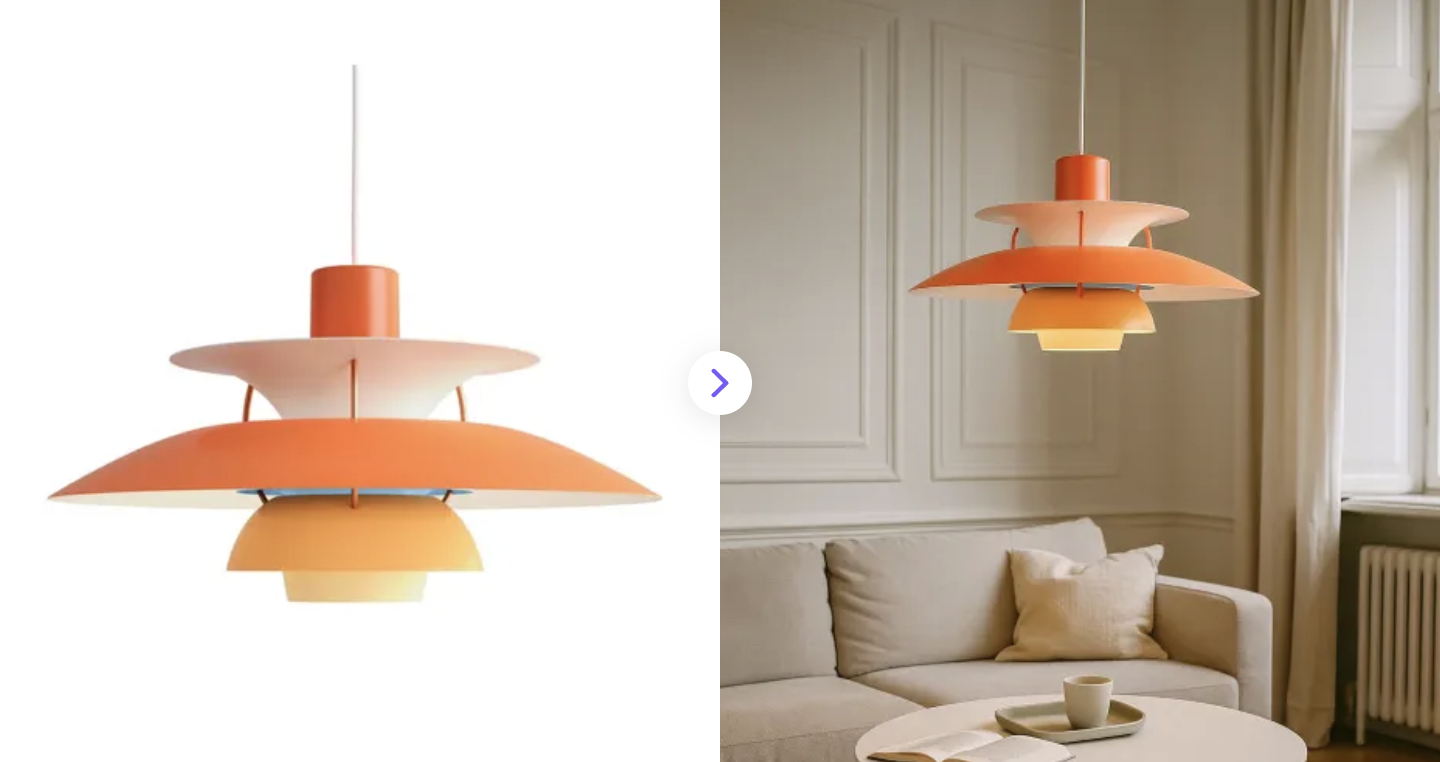 Upload a lighting photo to instantly generate AI-powered room photoshoot mockups.