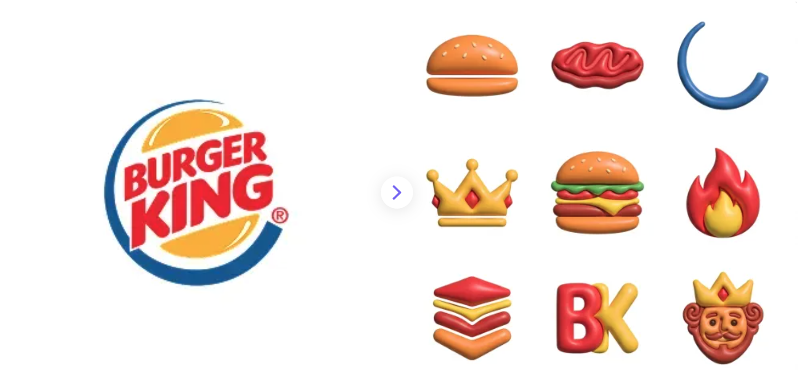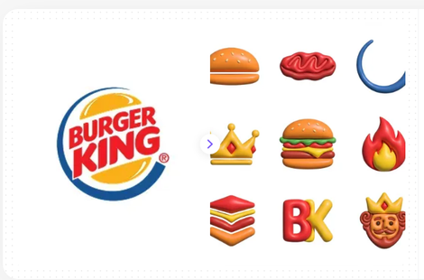 Take the Burger King example shown above. The AI successfully extracted the brand's iconic red, yellow, and blue color palette, along with its core themes (burgers, crowns, flames), and generated a set of highly stylized, appetizing 3D icons. These assets could easily be used across their mobile app, digital menu boards, or social media campaigns.