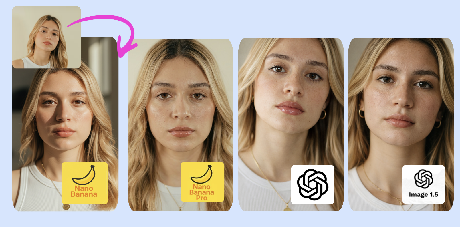 Results: In this character consistency test, Nano Banana often looks slightly artificial. Nano Banana Pro and GPT-4o produce more natural and consistent characters, keeping key identity features stable across images. GPT Image 1.5 performs moderate here.