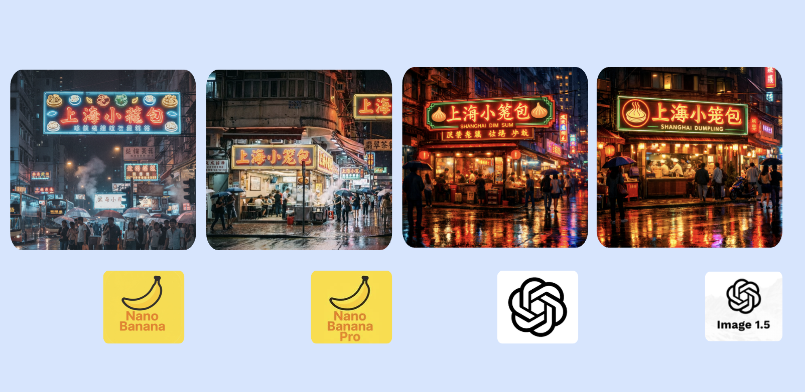 Results: Nano Banana Pro renders the Chinese text correctly; Other models may need carefully structured prompts for accurate rendering.