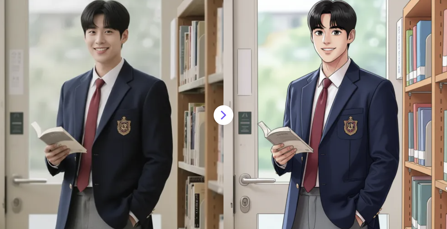 Convert your photos into stylish webtoon portraits instantly and for free. AI-powered, vibrant colors, smooth line art, and expressive comic-style eyes.