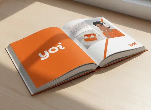 Upload your logo and watch AI create a realistic open-book layout with brand-matching visuals—clean, modern, and ready to share.