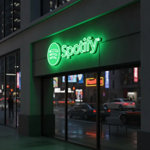 Photorealistic shop sign mockup featuring the uploaded logo, mounted on a storefront. Urban street background, natural daylight, soft shadows and reflections, high detail, professional brand-ready presentation.