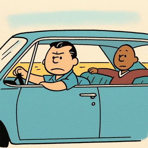 Transform this image into the playful and minimalist art style of Charles Schulz's Peanuts comics. The characters should be simple, with clean outlines and expressive poses. Use a limited color palette to create a charming, humorous, and timeless feel.