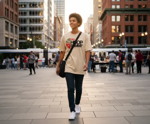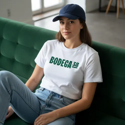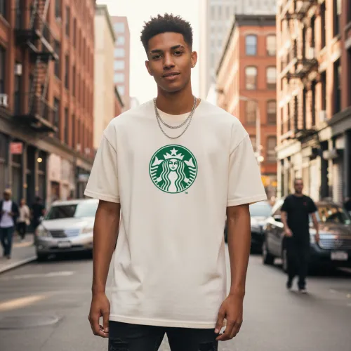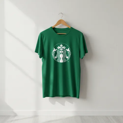 Upload your logo and let AI create a realistic T-shirt mockup in a brand-matching environment.